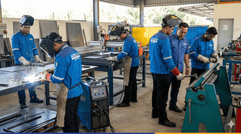 “Teknologi Fabrikasi Logam ialah bidang kemahiran yang mengajar anda teknik mengubah logam mentah menjadi produk atau struktur berfungsi melalui proses memotong, membentuk, dan mengimpal.”