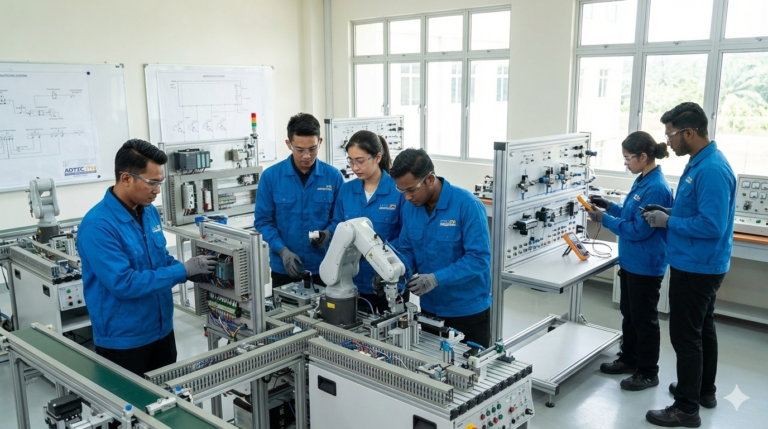 “Teknologi Mekatronik ialah gabungan pintar antara kejuruteraan mekanikal, elektronik, dan sistem komputer untuk mencipta robot serta mesin canggih yang boleh berfikir dan bergerak secara automatik.”