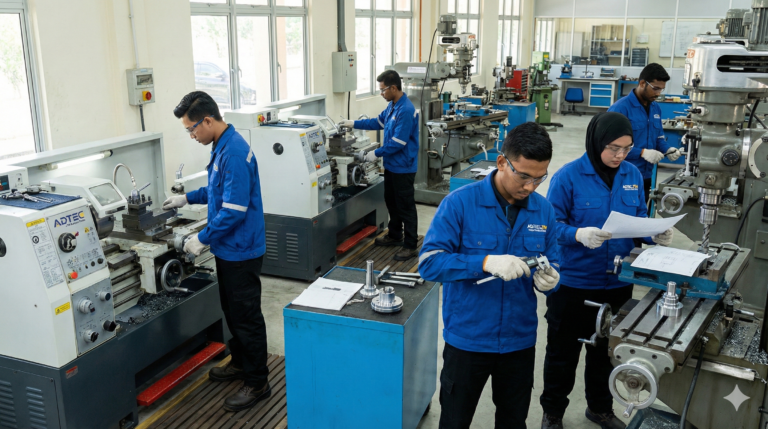 “Teknologi Pembuatan (Pemesinan) ialah bidang yang mengajar anda cara mengubah bahan mentah menjadi komponen kejuruteraan yang tepat dan berfungsi menggunakan mesin berteknologi tinggi serta perisian komputer.”